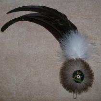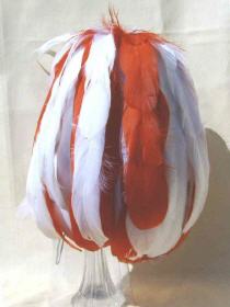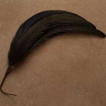 Unsere Hahnenschlappen bestehen aus 4 bis 5 gebogenen Federn mit einer Länge von ca. 32cm. |