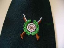 Unsere langlebigen Schützenkrawatten können Sie wahlweise uni oder mit gesticktem Emblem erhalten. Unsere Topseller sind Krawatten mit dem Emblem "Gekreuzte Gewehre", "Hubertus" oder "Fisch" (ohne Abb.). |