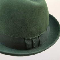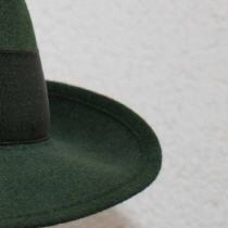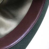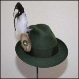Schützenhut Modell Gymnich, ein echter Haarhut, forstgrün, Rand ca. 50mm, Kopfhöhe ca.11cm, Bredéfeines Seideninnenfutter und Lederschweißband. 40mm Ripsband(Gesteck optional). => Schützenhut "Gymnich" in unserem online-shop
